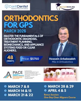 This education program addresses practicing dentists interested in increasing their knowledge, improving patient experience, and increasing revenue by adding Orthodontics to their practice. This master’s course consists of lectures and hands-on sessions. The course works on philosophy, diagnostic skills, and practical knowledge to increase treatment success and case acceptance.